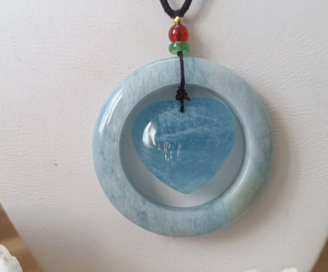 Collier Aigue Marine Rond Coeur Réglable