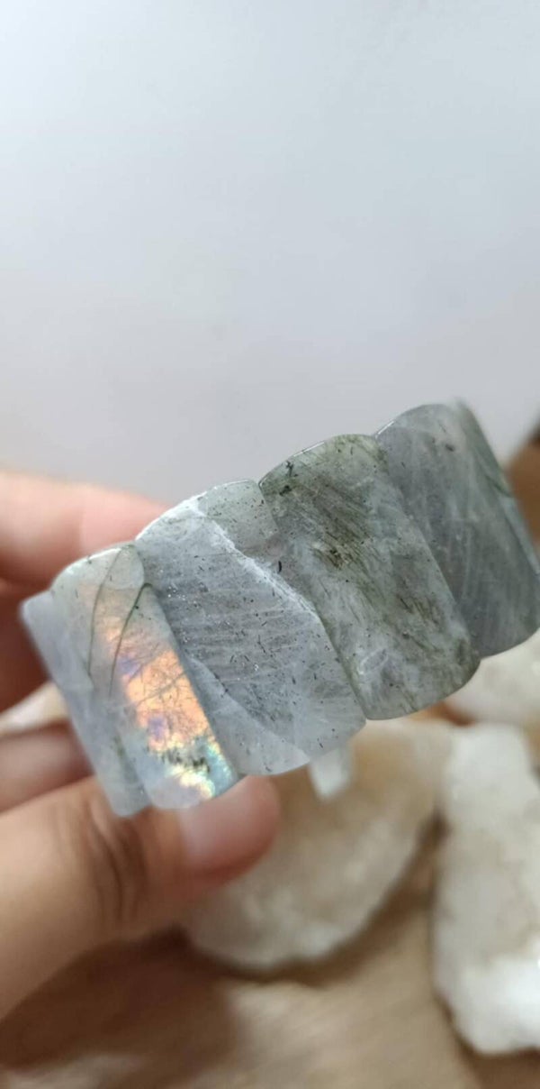 Bracelet Labradorite Violet et Verte Rectangle 3 cm