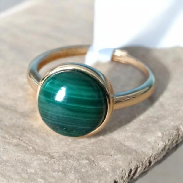 Bague Malachite Ronde Doré Réglable n°3