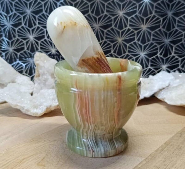 L'onyx vert, pierre de sérénité et de renouveau, est apprécié pour sa couleur vibrante et ses propriétés de soutien émotionnel. Cette pierre est souvent utilisée en lithothérapie pour favoriser la confiance et l'équilibre