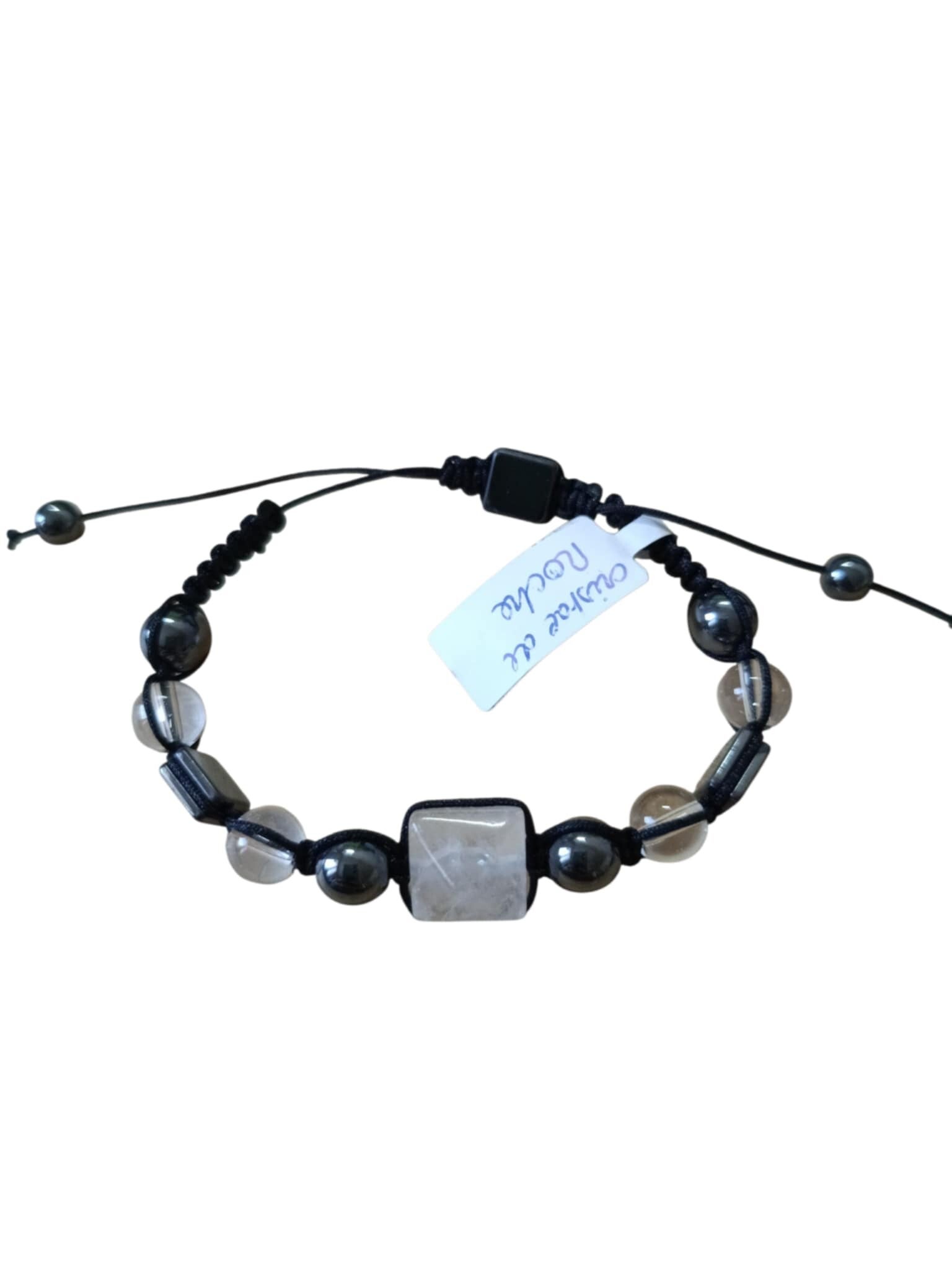 Bracelet Cristal de Roche & Hématite " Pyramide "